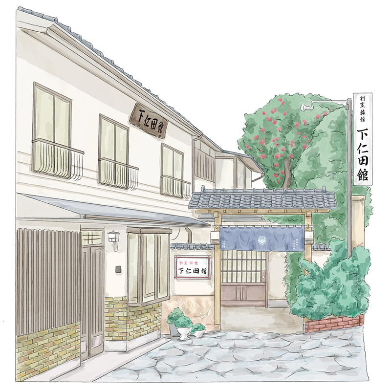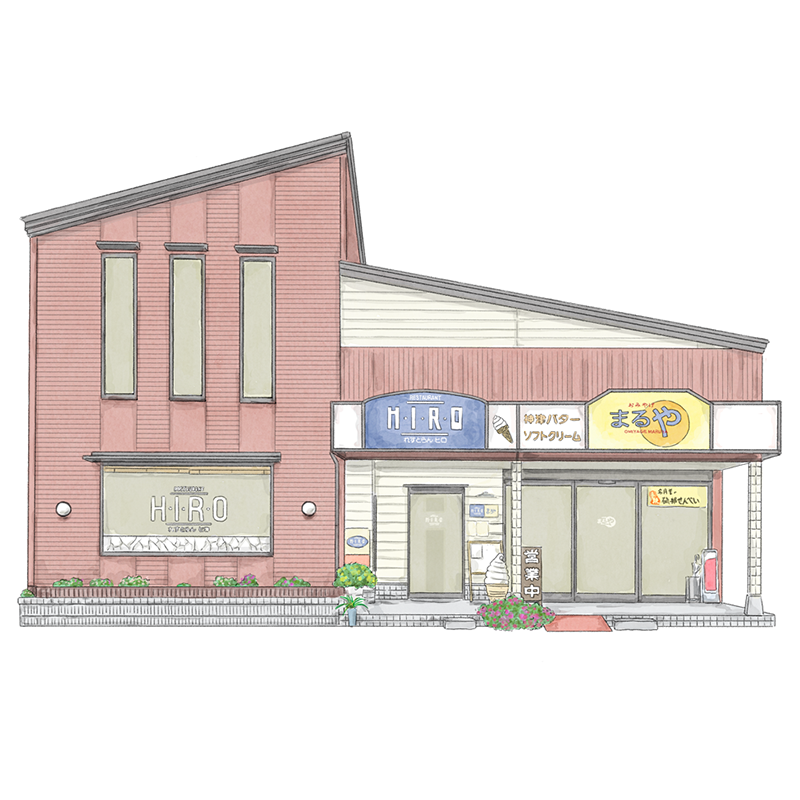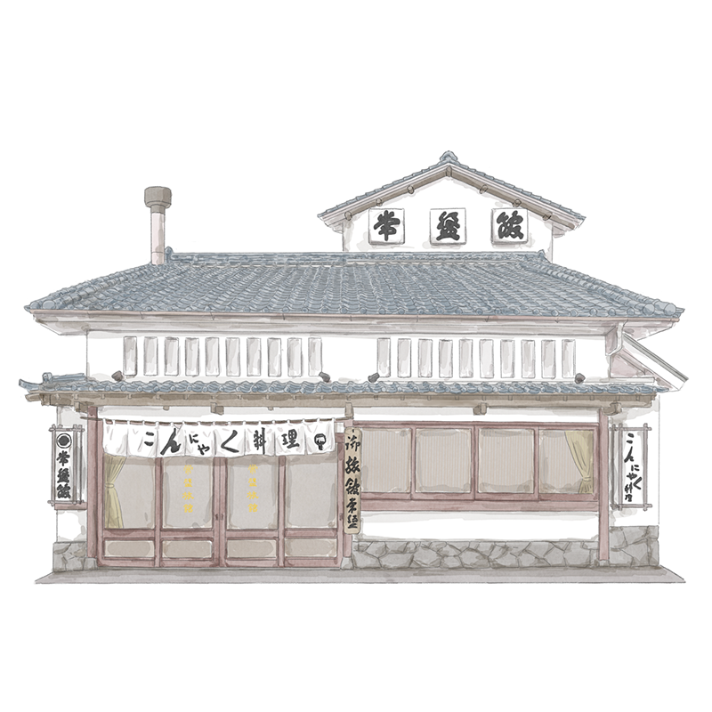 下仁田町の中央通りを中心とした昭和レトロな飲食店の外観をイラストで表現。材質も木製にこだわり軽くて温かみも感じられます。